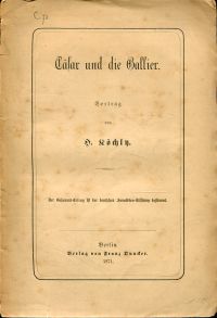 Köchly, Hermann August Theodor: Cäsar und die Gallier. Vortrag. Berlin: Duncker 1871. 8°. 59 S., broschiert (Buchblock geknickt und eingerissen; Papier altersbedingt leicht gebräunt; leicht stockfleckig) Text in Fraktur.