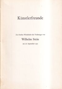 [Stein, Wilhelm:] Künstlerfreunde. Zur fünften Wiederkehr des Todestages von Wilhelm Stein am 28. September 1975. [Bern]: [Eicher] 1975. 8°. [25] S., geheftet