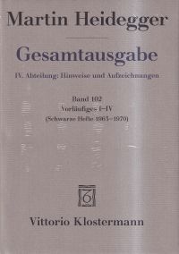 ![]() Heidegger, Vorläufiges I-IV (Schwarze Hefte 1963-1970). (Umschlag) |