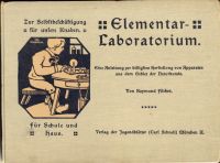 Fischer, Raymund: Elementar-Laboratorium. Eine Anleitung zur billigsten Herstellung von Apparaten aus dem Gebiet der Naturkunde ; in schematischer und perspektivischer Darstellung mit erläuterndem Text. Zur Selbstbeschäftigung für unsere Knaben. 3. Aufl. München: Schnell 1907. quer- Gr.-8°. 59 S., zahlreiche teilweise mehrfarbige Illustrationen, Leinen (stockfleckig; wenig abgegriffen; Buchblockj gebrochen)