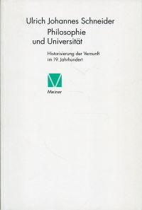 Schneider, Ulrich Johannes: Philosophie und Universität. Historisierung der Vernunft im 19. Jahrhundert. Hamburg: Meiner 1999. Gr.-8°. X, 405 S., broschiert (Rücken wenig bestossen; gut erhalten) Untersuchungen über die Universitätsphilosophie als Produktionsstätte der Philosophiegeschichtsschreibung.