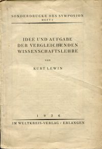 Lewin, Kurt: Idee und Aufgabe der vergleichenden Wissenschaftslehre. Erlangen: Weltkreis 1926. gr. 8. S. 61-93, broschiert (abgegriffen; angestaubt; leicht stockfleckig) (=Sonderdrucke der Symposion ; H. 2)