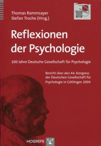 Rammsayer, Thomas (Hrsg.): Reflexionen der Psychologie. 100 Jahre Deutsche Gesellschaft für Psychologie ; in Göttingen 2004. Göttingen: Hogrefe 2005. 8°. 222 S., broschiert (gut erhalten) (=Bericht über den … Kongress der Deutschen Gesellschaft für Psychologie ; 44) Beiträge teilweise deutsch, teilweise englisch.