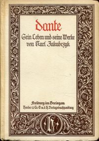 Jakubczyk, Karl: Dante. Sein Leben und seine Werke. Freiburg i. Br.: Herder 1921. 8°. XI, 291 S.,1 Titelbild, Pappband mit Einbandschmuck (gebräunt; wenig Anstreichungen; sonst gut erhalten) In Fraktur