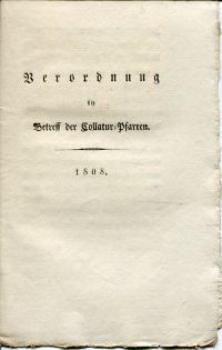 ![]() Verordnung in Betreff der Collatur-Pfarren. (Umschlag) |