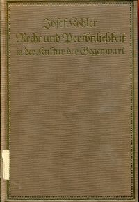 Kohler, Recht und Persönlichkeit in der Kultur der Gegenwart.