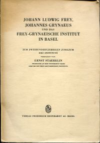 Staehelin, Ernst: Johann Ludwig Frey, Johannes Grynaeus und das Frey-Grynaeische Institut in Basel. Zum zweihundertjährigen Jubiläum des Instituts. Basel: Friedrich Reinhardt 1947. gr.-8°. 221 S., mit Abbildungen, broschiert (Bibliotheksexemplar; Bibliotheksvermerke; Stempel auf Titelblatt; Umschlag angestaubt und abgegriffen; sonst gut erhalten)