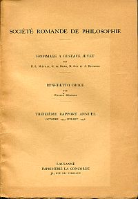 Mieville, H.-L. et al.: Hommage à Gustave Juvet. Günther, Werner: Benedetto Croce. Lausanne: Imprimerie La Concorde 1937. 8°. 50 S., Broschiert (Seiten nicht beschnitten; Einband mit leichten Gebrauchsspuren; Papier altersbedingt leicht gebräunt; sonst altersgemäss gut erhalten) (=13ème Rapport annuel 1935-1936)