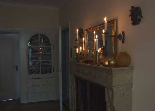bildreich karten PK 563: heiligberger weihnacht II. Querformat. (Kerzen, Cheminée, Kamin, Kerzenständer, Wohnzimmer, Heiligberg) Mindestbestellmenge: 15 Karten (auch assortiert).