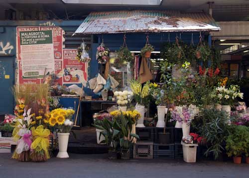 bildreich karten PK 822: mercato di testaccio. Querformat. (Markt, Blumenmarkt, Rom, Mercato, Schnittblumen, Florist) Mindestbestellmenge: 15 Karten (auch assortiert).