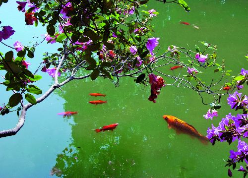 bildreich karten PK 520: morgen am teich II. Querformat. (Goldfische) Mindestbestellmenge: 15 Karten (auch assortiert).