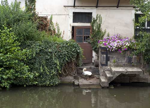 bildreich karten PK 702: ledas platz. Querformat. (Schwan, Nest, Treppe, Kanal, Fluss, Fassade) Mindestbestellmenge: 15 Karten (auch assortiert).