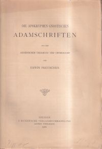 Preuschen, Erwin: Die apokryphen gnostischen Adamschriften. Aus dem Armenischen übersetzt unf untzersucht. Giessen: Ricker 1900. 8°. 90 S. Broschiert (Einband mit Gebrauchsspuren; Seiten nicht beschnitten; altersgemäss gut erhalten)